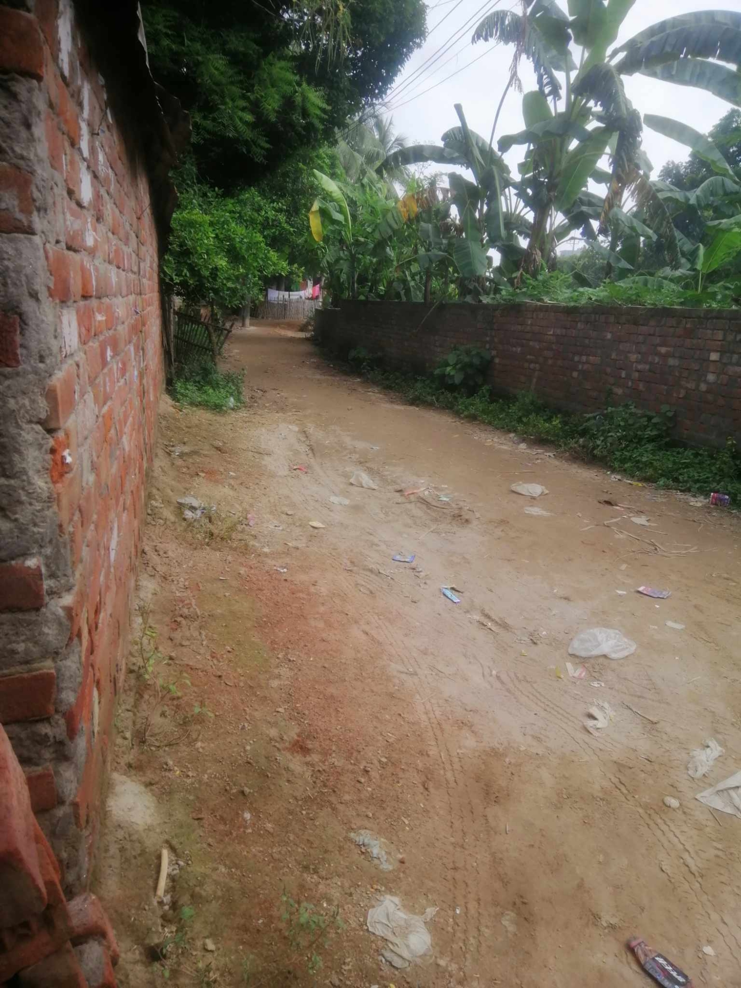 খালি জায়গাটুকুর মধ্যে আম কাঠালের ফলদার গাছ লাগানো আছে,